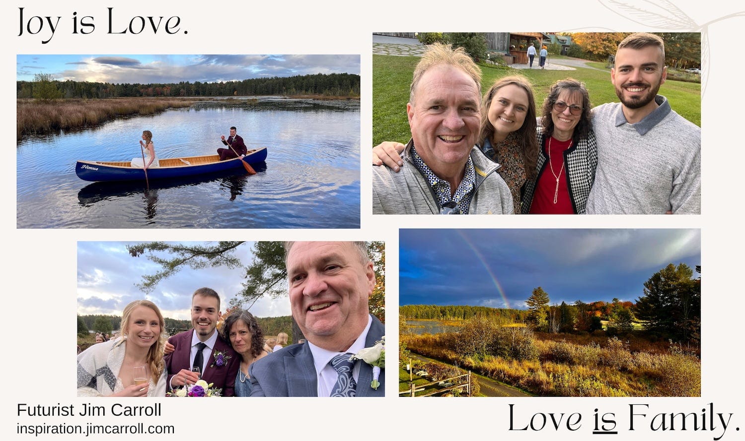 It was also the weekend that my eldest son Willie (William) married his soulmate Laura. The wedding was held in a glorious outdoor location in the Muskoka region north of Toronto - the autumn colors were popping at the same time that showers and sun were lingering together in the air. I had been watching the weather for weeks, and forecasted 10 days before the wedding that the temperature would be 13C with clouds and a bit of sun - and that's exactly what we had! The rain held off until the final moments, and the sun peaked through the clouds giving some blue sky. We were so lucky since the next day it was cold, drizzling, and rain - and yuck! We even had a rainbow, capping the joyful moment!