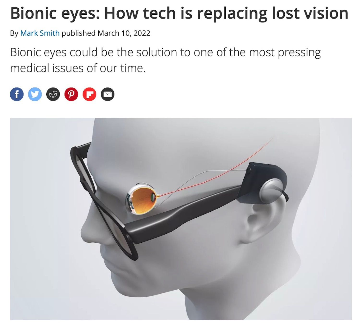 we will soon see 'smart medical implants. This will include a contact lens, surgically implanted, that will feature storage, a battery, sensors, and other electronics to aid in vision