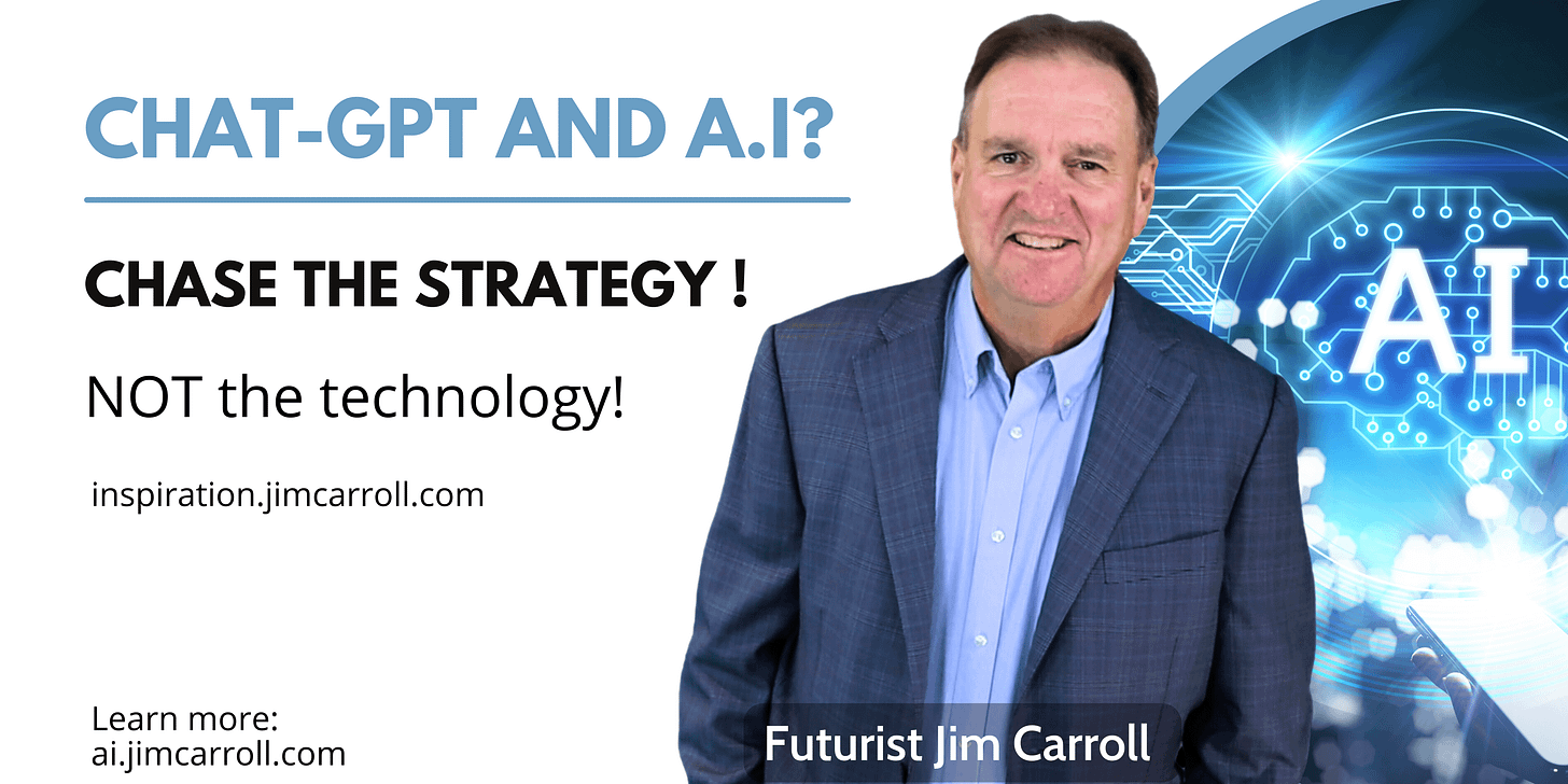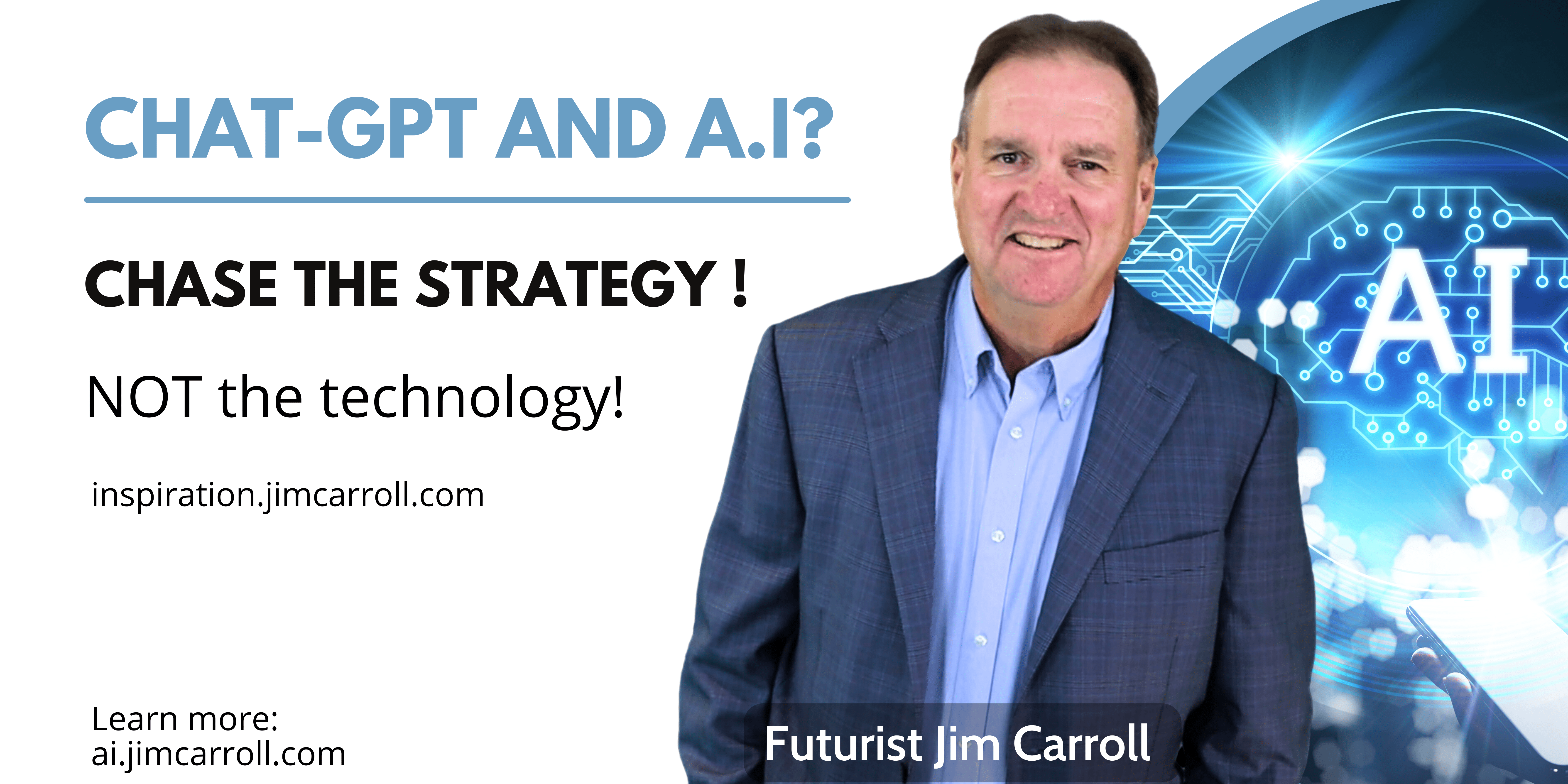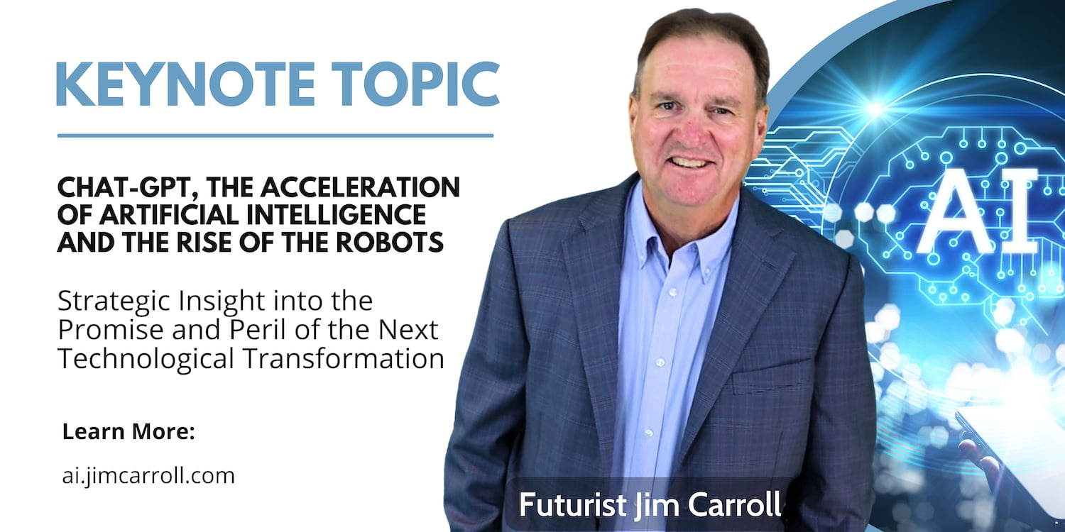 Futurist Jim Carroll is finding that the level of interest in understanding the strategic implications of A.I. with his executive audiences is simply unparalleled. More information about his talks in this area can be found at https://ai.jimcarroll.com