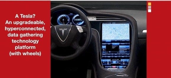 And so in both of these talks, I put into perspective how Tesla has (without knowing it, LOL) been following my rules. First, think about what a Tesla really is - here's my slide....