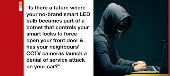 Here’s the thing: most #IOT (Internet of Things) projects today are a complete failure – they are insecure, built on old outdated Linux stacks with mega-security holes, and ill-thought out architectures. My slide on that fact? Simple: a reality which is already happening today. This type of negligence will doom of the future of the products of many of the early pioneers.