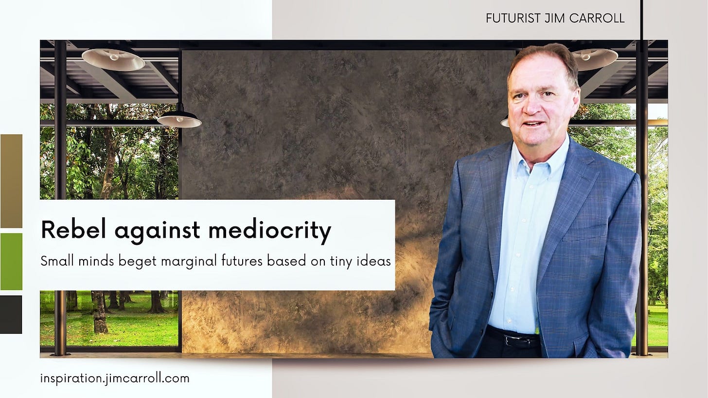 "Rebel against mediocrity Small minds beget marginal futures based on tiny ideas!"