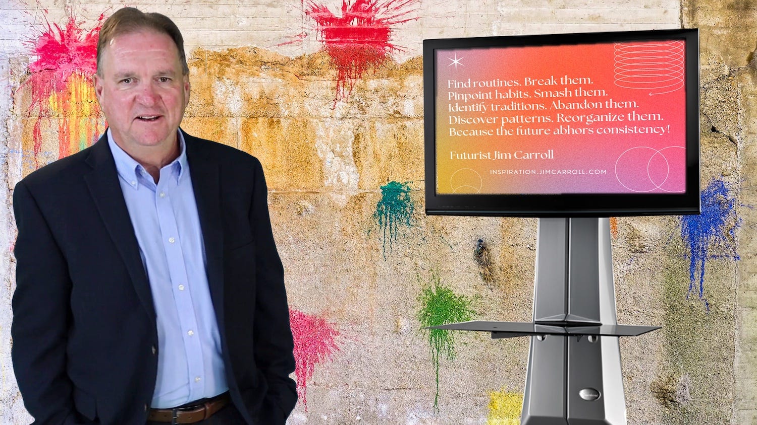 "Find routines. Break them. Pinpoint habits. Smash them. Identify traditions. Abandon them. Discover patterns. Reorganize them. Because the future abhors consistency!"
