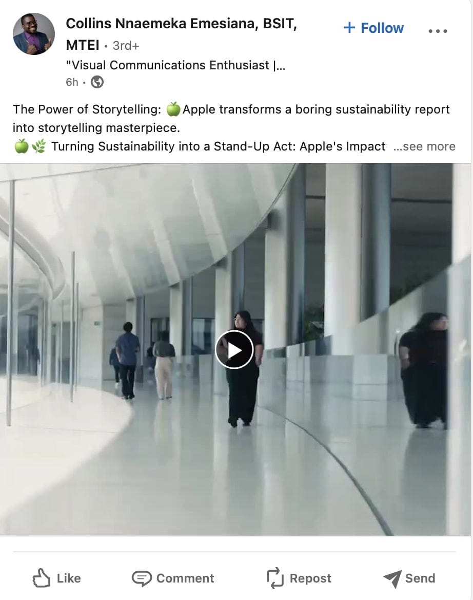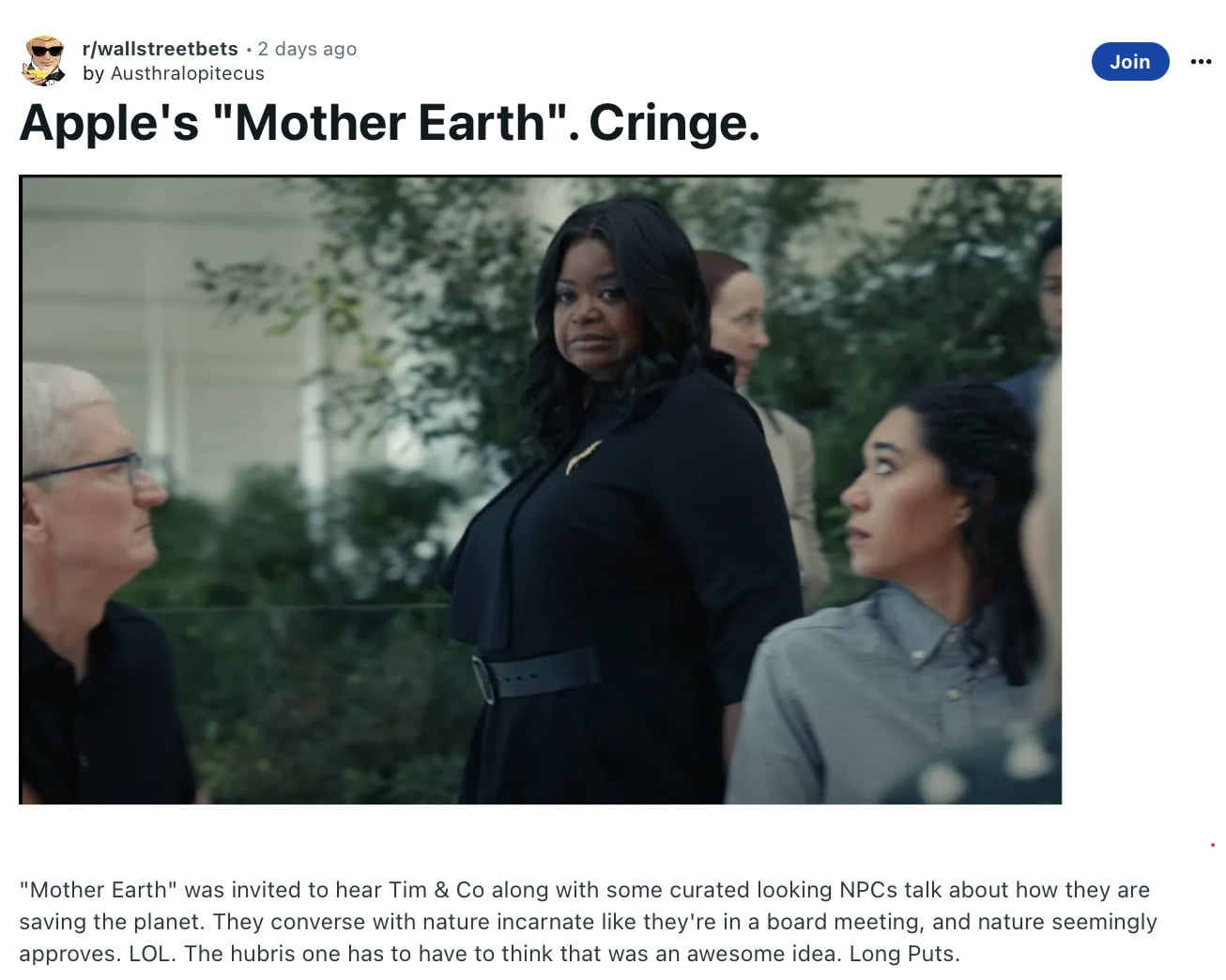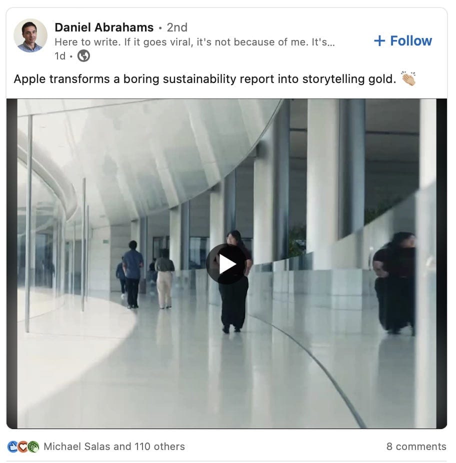 Some of the posts note the goal of Apple: "transforming an otherwise boring sustainability report into a storytelling masterpiece."