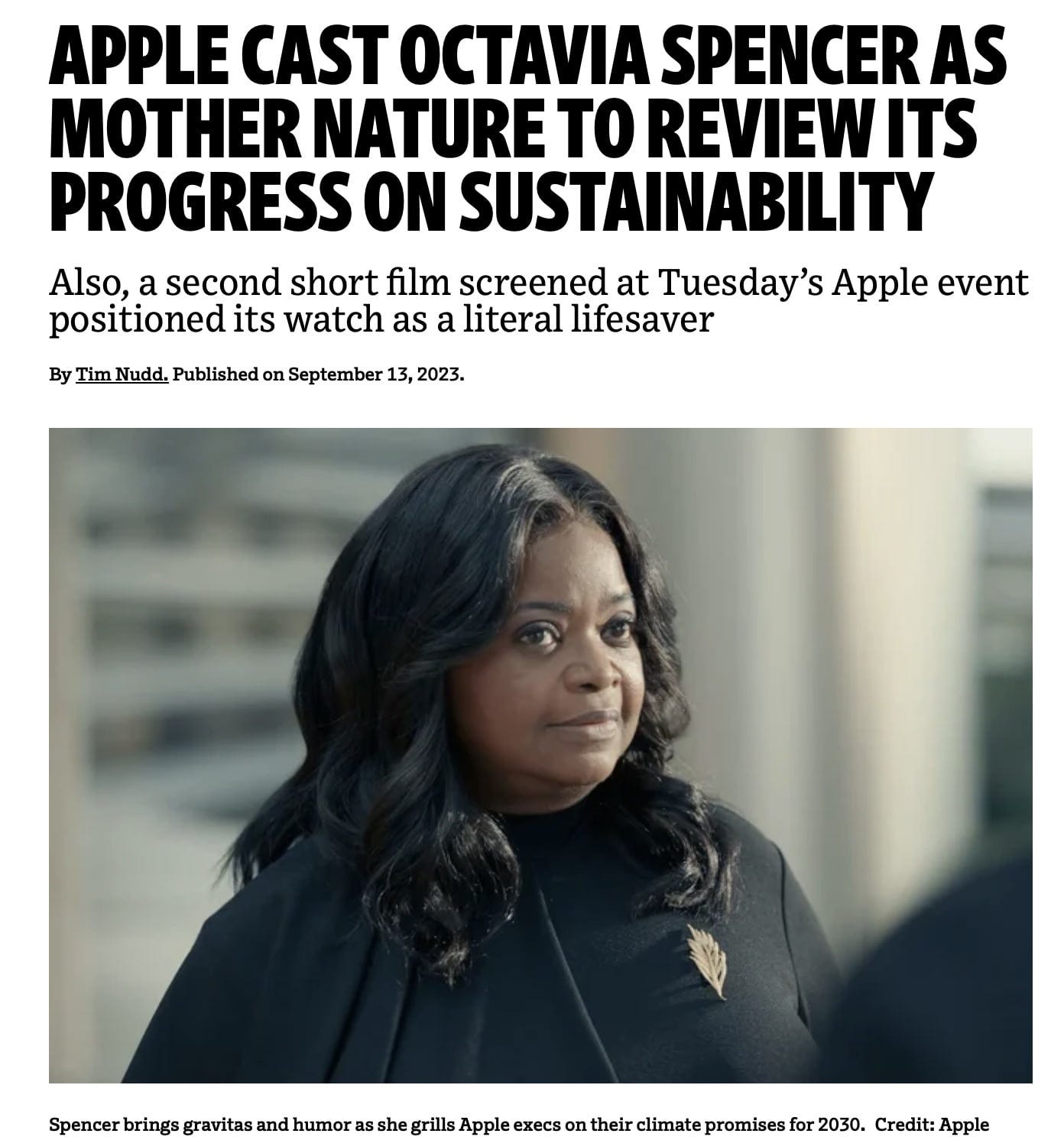 Did you catch Apple's Mother Nature video, which was tucked away in the middle of its new iPhone broadcast the other day? It was an attempt by the organization to lay out, in a new and different way, its success - or lack thereof - in meeting its sustainability objectives. As an organization that actually chases sustainability rather than chasing lip service, it sought to try to tell its story in a unique and different fashion. After all, in this world of collapsed attention spans and shock journalism, it's pretty likely that few people would actually read a long report about sustainability - so why not try something different?