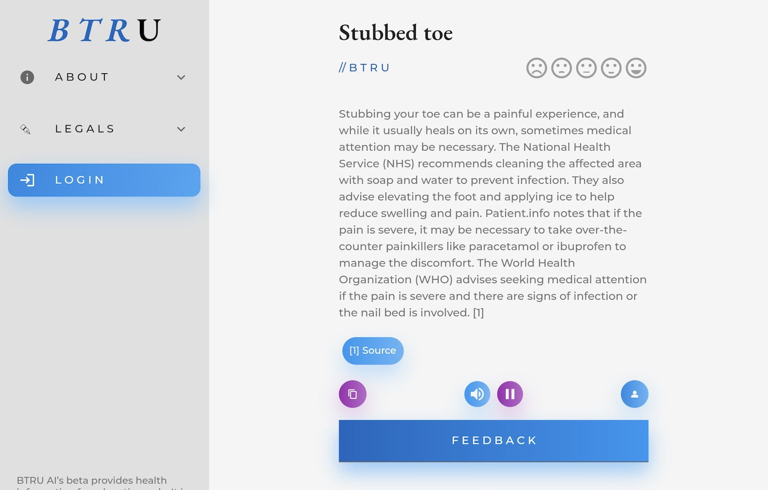 Now layer AI into the mix - all of the trends identified above will now happen faster, and we will continue to see a massive acceleration in everything having to do with healthcare. As I look around, I continue to see the arrival of fascinating new opportunities, such as BTRU ("Better you!"), an AI healthcare search engine that promises to provide straightforward access to better healthcare information, helping people avoid the ad-driven information delivered by traditional search engines.