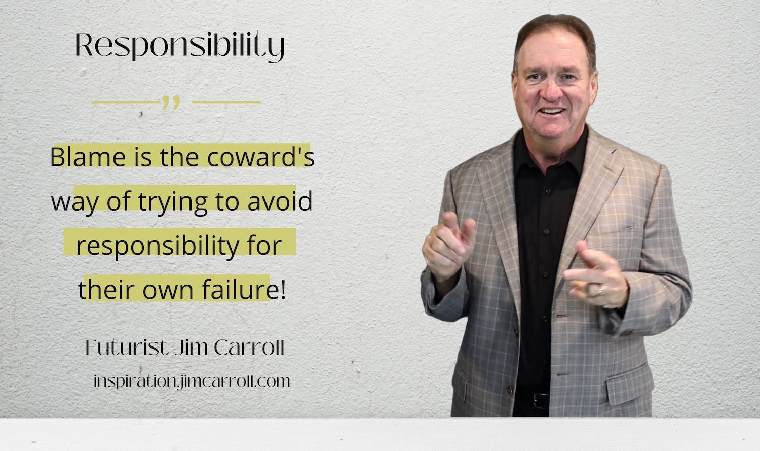 "Blame is the coward's way of trying to avoid responsibility for your own failure!" - Futurist Jim Carroll