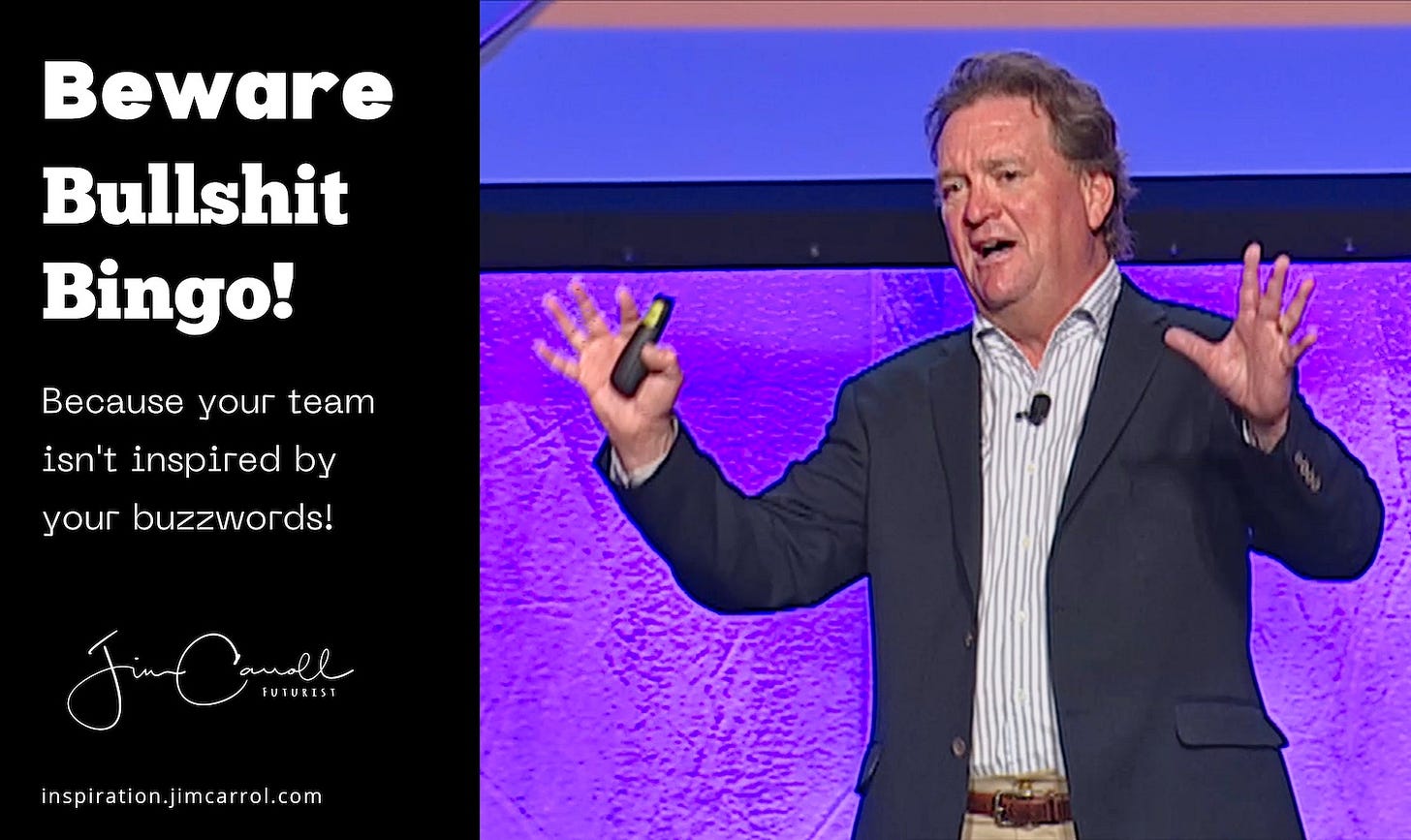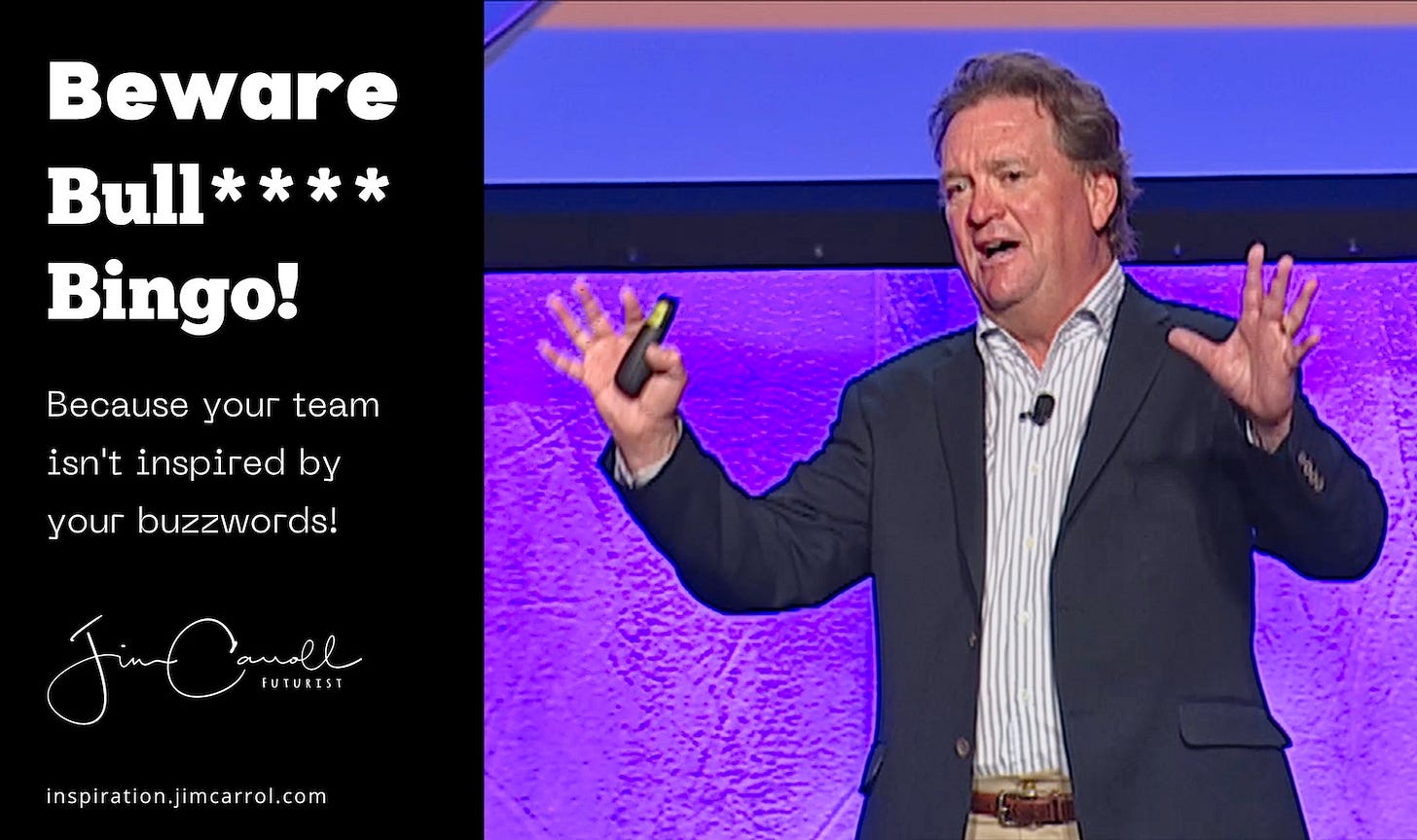 I often tell the story on stage, as an example of how organizations tend to slide into a cultural wasteland, both through the inaction they fall prey to but also through the banalities that drive those actions. Buzzwords are barriers to progress because they imply an easy way out, a temporary strategy based on fads and FOMO ('fear of missing out), and narrow thinking. Here's a clip from Denver some years back, in which I'm relaying the story.