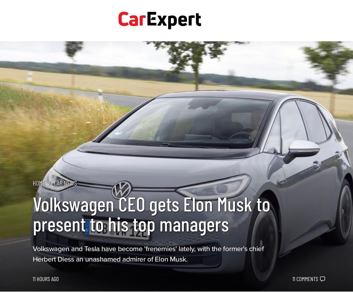 If you hadn't seen the news story through the weekend, you should see it now. In a surprise move, Volkswagen AG CEO Herbert Diess invited Tesla CEO Elon Musk to address an internal global leadership meeting on a wide variety of issues, including the acceleration of electric vehicles, supply chain issues, the chip shortage, and more. With this move, Diess is now my new leadership hero! (Elon is pretty much up there too.)