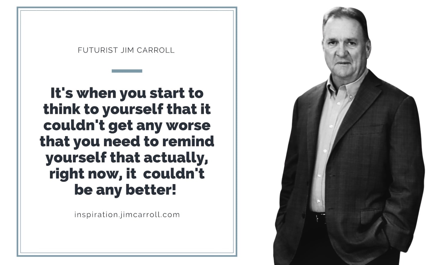 Futurist Jim Carroll has little patience for those who live a life of fortune and whine about their circumstances. Sadly, there seem to be more and more people falling into this mindset day by day.