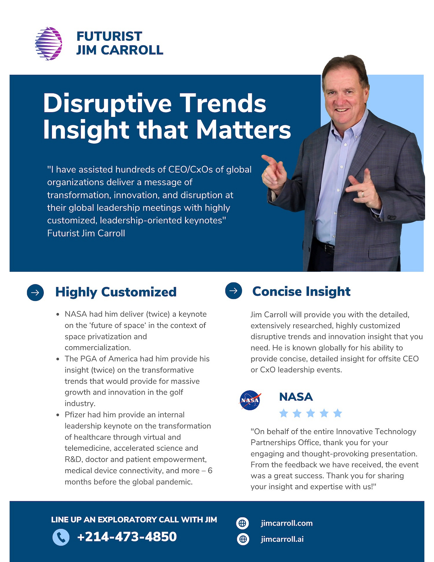Looking for real content to solve a business problem. These are the clients I love to work with. My home page tagline reads: "I help CEOs achieve their strategic objectives by aligning their organizations to a disruptive, accelerating future. It’s powerful leadership insight based on detailed, specific industry trends – delivered within a fast-paced keynote with a compelling motivational style!”