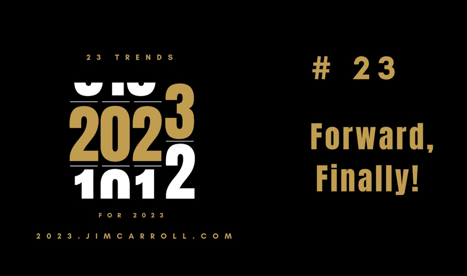 The final trend in Jim's series '23 Trends for 2023' will be released later today. You can view the entire series at https://2023.jimcarroll.com.