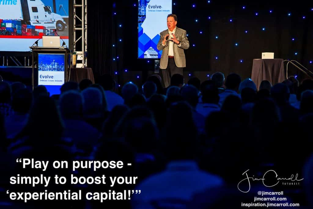 "Experiential capital: Do things that have a vague objective, an unknown potential for success, and an uncertain payback!" - Futurist Jim Carroll