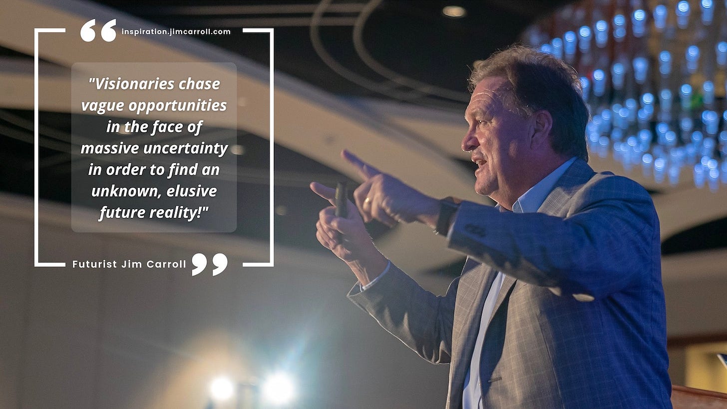 "Visionaries chase vague opportunities in the face of massive uncertainty in order to find an unknown, elusive future reality!"