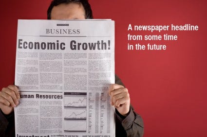 Start here - here's a headline I used on stage to great effect from late '08 until about '13 as I walked my audiences through the issue of why needed to be relentless growth optimists. You and I know that the headline on the left is going to run in newspapers and mainstream media one day. The BIG question is when!