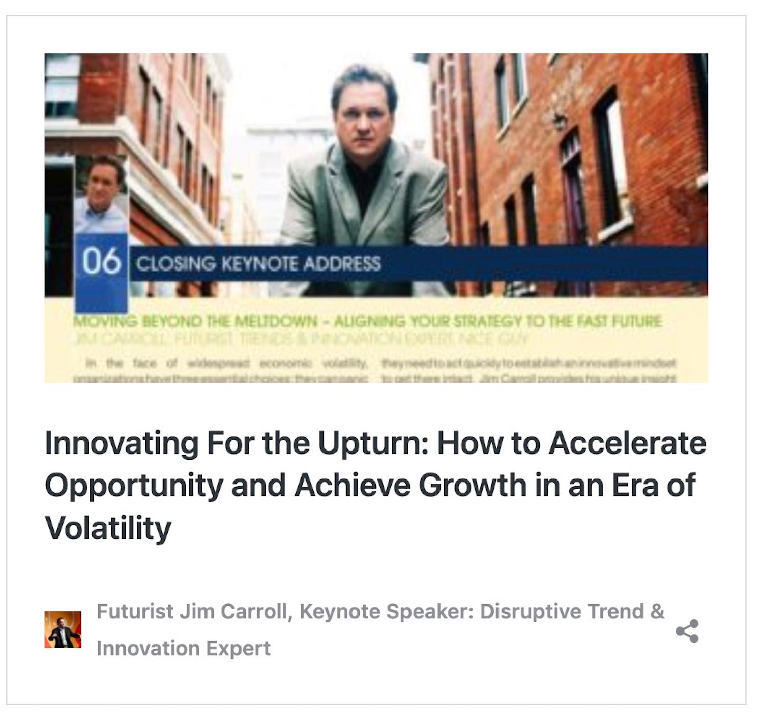Need a strategy for innovating for growth in uncertainty? It's right there in those bullet points - and that's what I'm concentrating on in my "Innovating for the Upturn" keynote. It’s at https://growth.jimcarroll.com