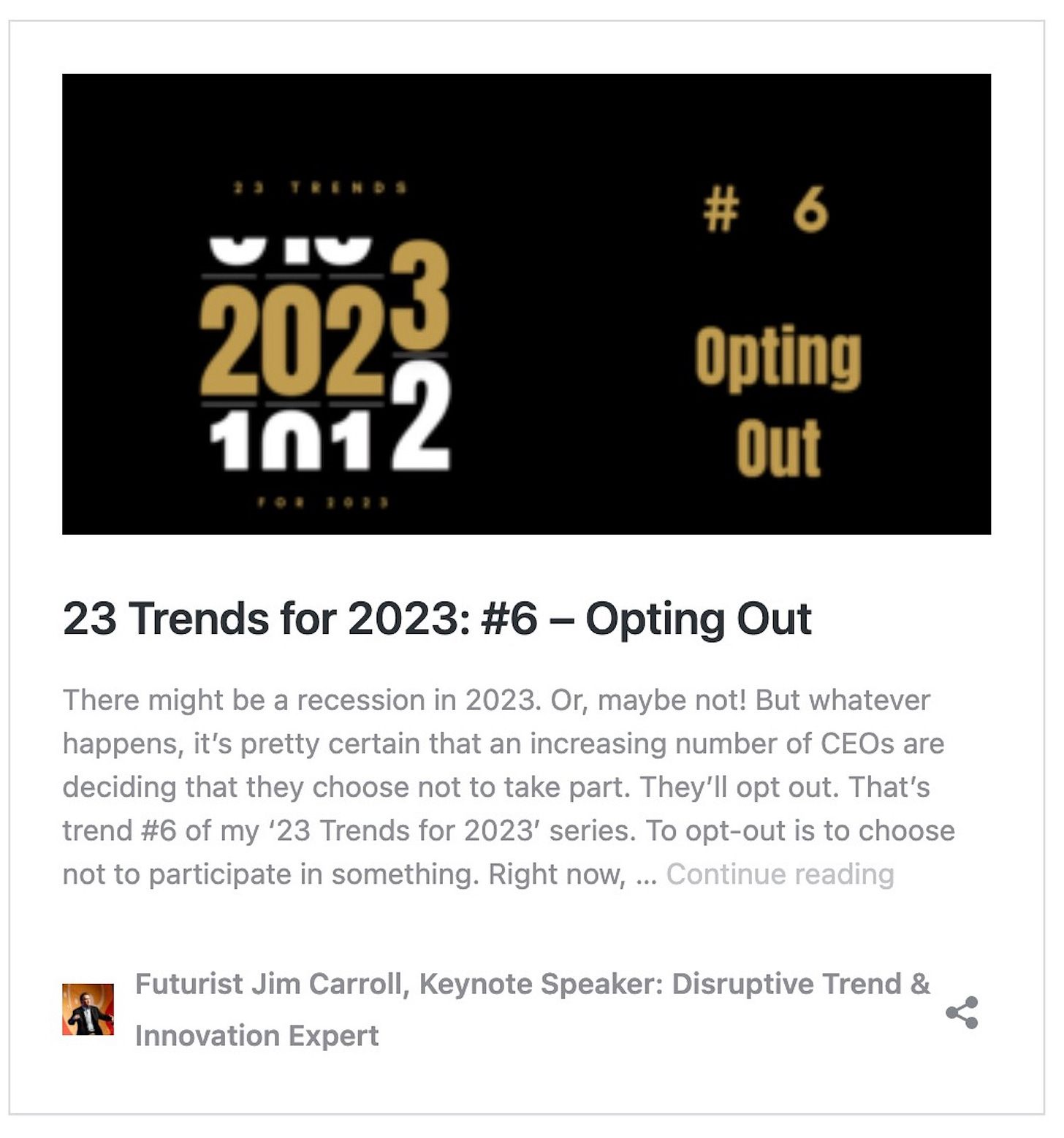 I was on a video call with the CEO of a client organization in the insurance industry yesterday. I'm with them next month; we spent some time with him and his team to walk through my potential discussion points. And I can tell you while he was excited with my content, he also became very excited when I spoke about my approach to the topic of A.I. That excitement continued when I spoke of the fact that I'm seeing many organizations 'simply choose not to participate in any potential downturn,' and that I could work this detailed insight into my keynote.