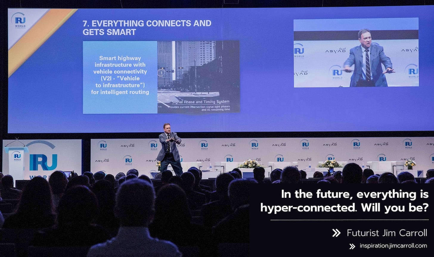 Futurist Jim Carroll helps CEOs and senior management achieve their strategic objectives by aligning their organizations to a disruptive, accelerating future. He provides powerful leadership insight based on detailed, specific industry trends – delivered within a fast-paced keynote with a compelling motivational style! He has done many keynotes on the entire topic of hyper-connectivity, outlining in stark terms the promise and peril of our connected future.