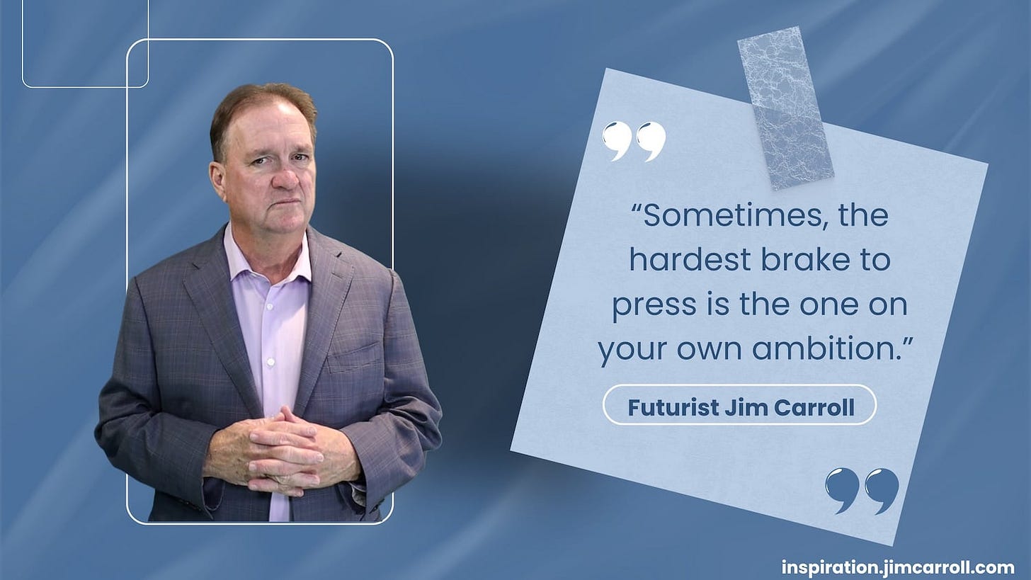 “Sometimes, the hardest brake to press is the one on your own ambition.” – Futurist Jim Carroll