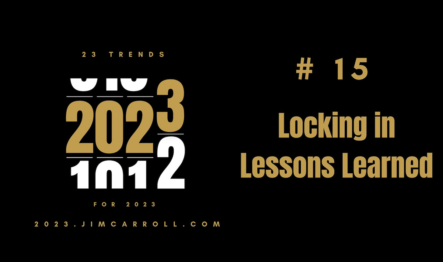 We learned a tremendous number of lessons as to how to do things better, faster, and with more insight than ever before, and that's why trend #15 of my "23 Trends for 2023" is Locking in Lessons Learned.
