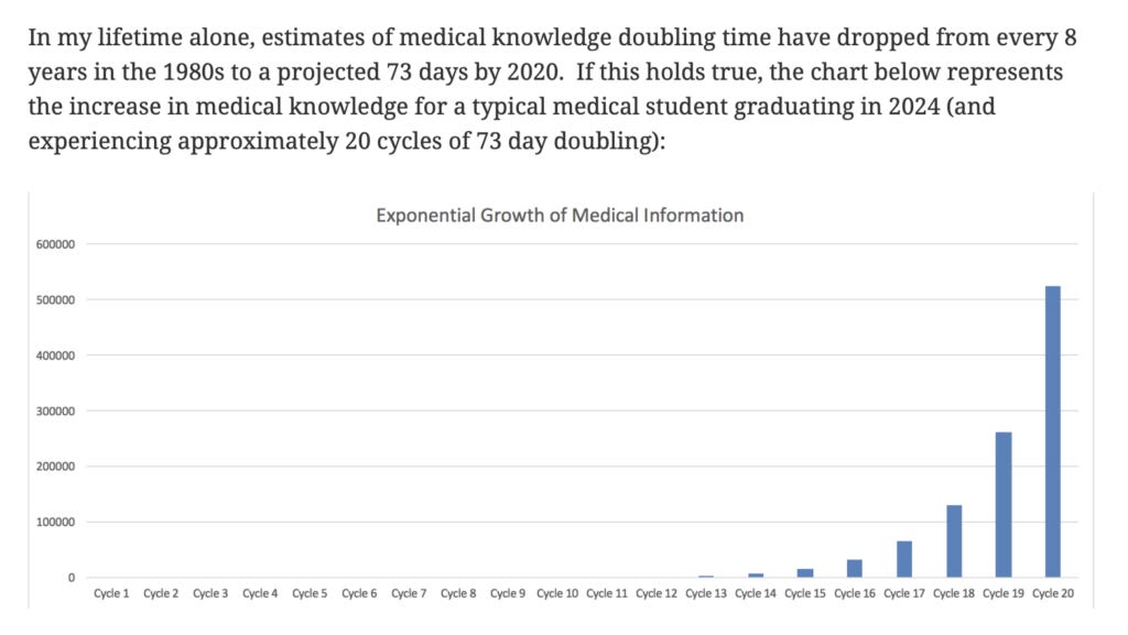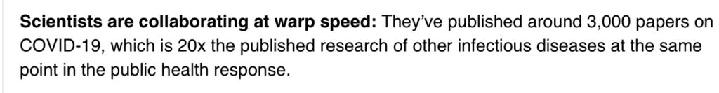 But it's not just information sharing - the very nature of R&D has forever changed. Overall, the entire world of medical, pharmaceutical, and science technology accelerated to a ridiculous degree during the pandemic - I often share the statistic that while the volume of medical knowledge was doubling every 8 years before Covid, months into the pandemic it was doubling every 78 days.