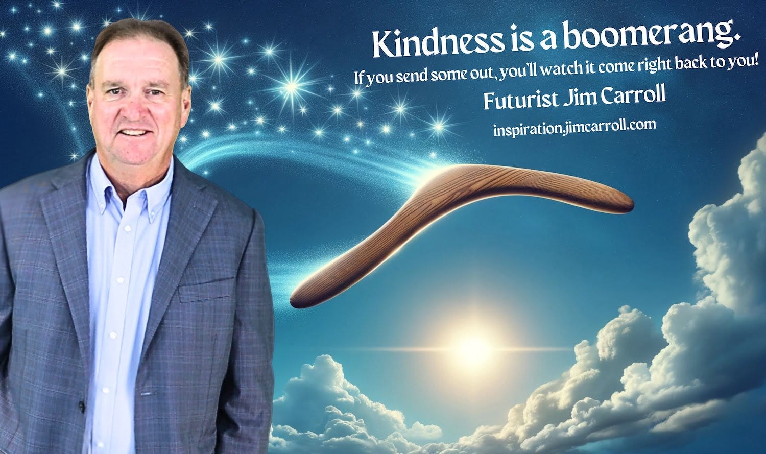 Futurist Jim Carroll gets all his inspiration for kindness from his wife of 34 years, who seems to have kindness embedded into her spiritual core.