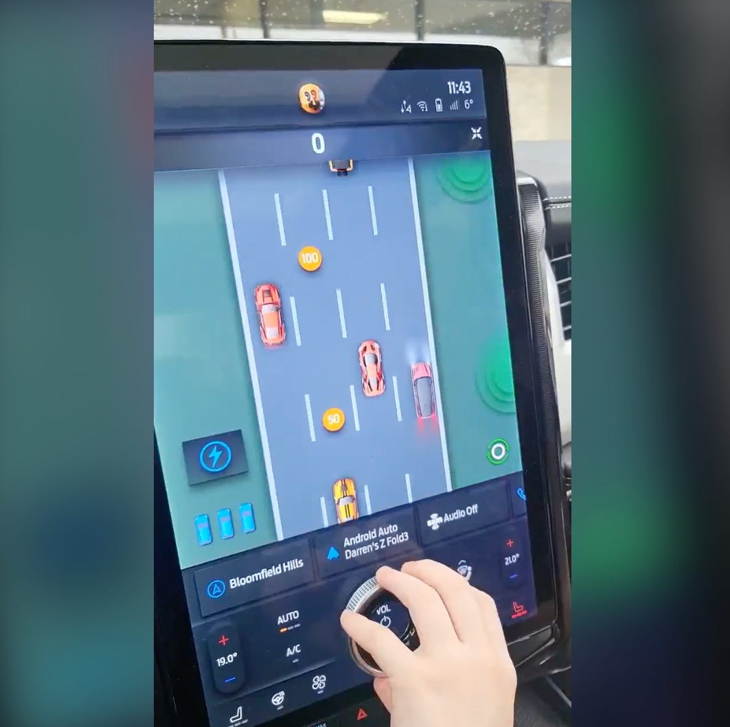 Designing a car or truck today is essentially like designing a computer device - and legacy companies don't know how to do it. And so, they keep on doing what they've done before. Hence, knobs. Here's the thing - the knob in the Ford F150 doesn't actually let you do much - perhaps turning the volume up and down is an option. Oh, and there's a video game that you can play. That's an important reason to have a knob!