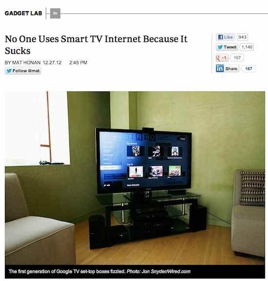 Smart TV’s? No one uses smart TV’s because they’re dumb. And that seems to be a message that is resonating on the Internet; such as this article recently featured on Wired.