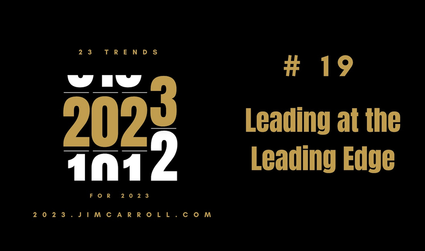 They're prepared to align to new technologies and methodologies, explore new concepts and try them out, and keep an eye and ear well-tuned to what comes next. That's why trend #19 of my '23 Trends for 2023' is Leading at the Leading Edge.