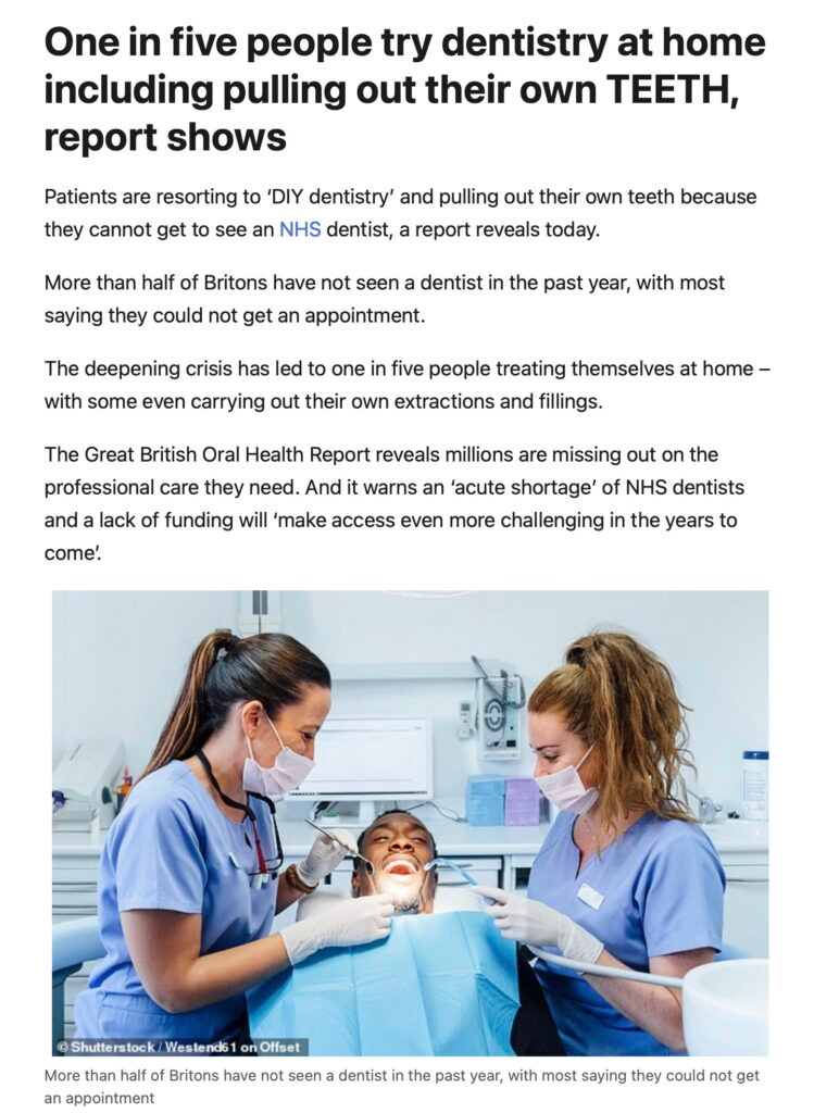 In 2021, dentists saw 2,215,478 patients – a drop of more than three million from the 5,337,195 seen in 2019, prior to Covid hitting.
