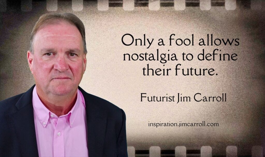 As Charles Kettering, an inveterate inventor noted, “you can’t have a better tomorrow if you are thinking about yesterday all the time.” I take on the topic of nostalgia on stage frequently, challenging leadership teams to refuse the allure of looking back as part of their strategic planning.
