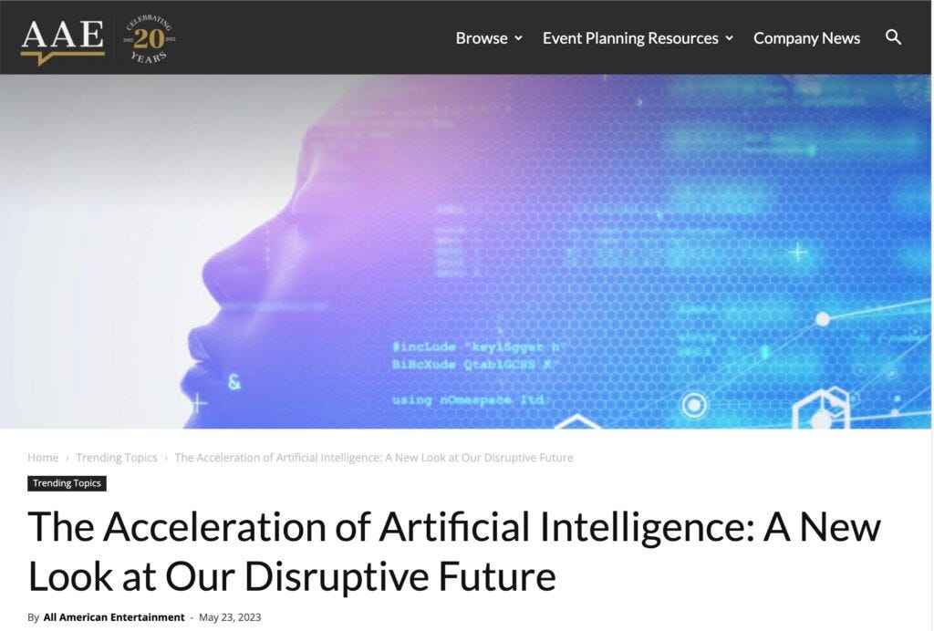 Just yesterday, AAE Speakers shared the article I wrote for them, "The Acceleration of Artificial Intelligence: A New Look at Our Disruptive Future." [ link ]
