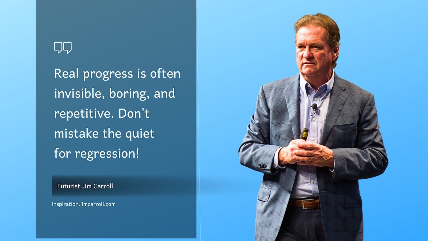 “Real progress is often invisible, boring, and repetitive. Don’t mistake the quiet for regression!” - Futurist Jim Carroll