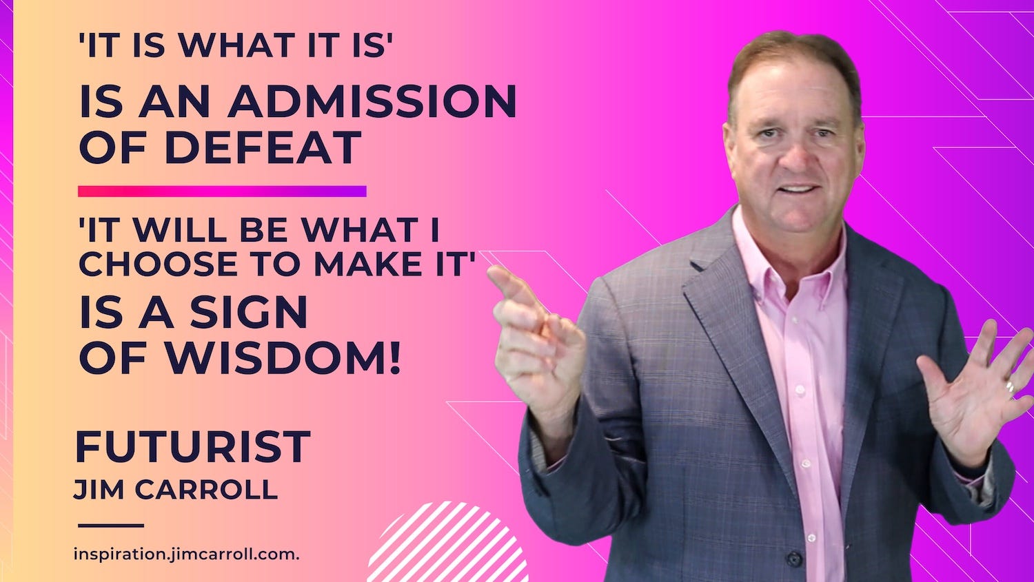 "'It is what it is' is an admission of defeat. 'It will be what I choose to make it' is a sign of wisdom!"