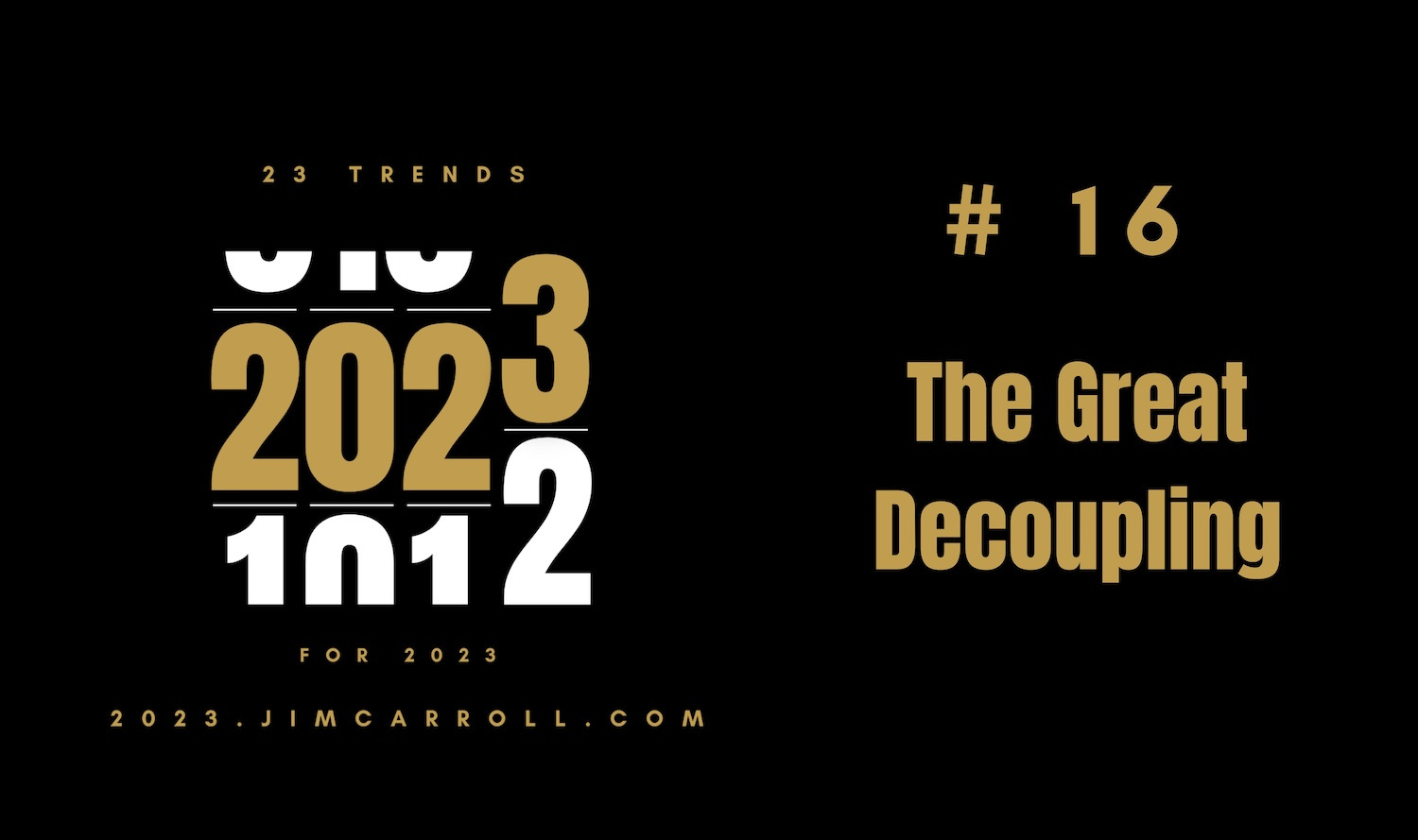 Globalization as we know it is over -and with that, one of the most basic assumptions which drove the post-World War 2 economy has come to an end. That's why trend #16 of my "23 Trends for 2023" is The Great Decoupling - what happens as the assumptions behind the success of globalization are challenged, and a reorganization of the global economy occurs.