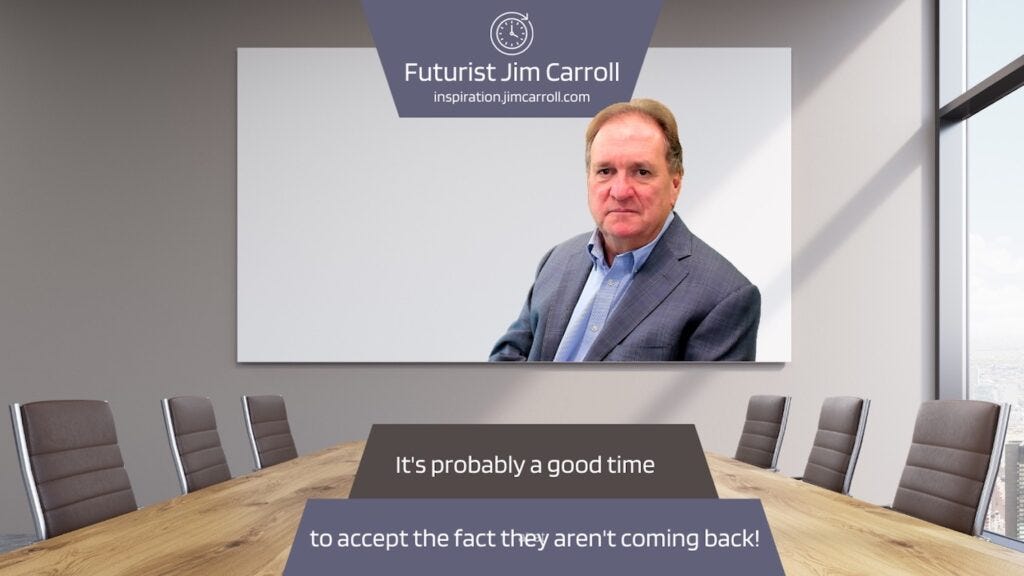 One year ago today I wrote this into my daily post: “The future of work? We’ve shifted from ‘what do you do for a living' to ‘what do you like to do?’” - Futurist Jim Carroll