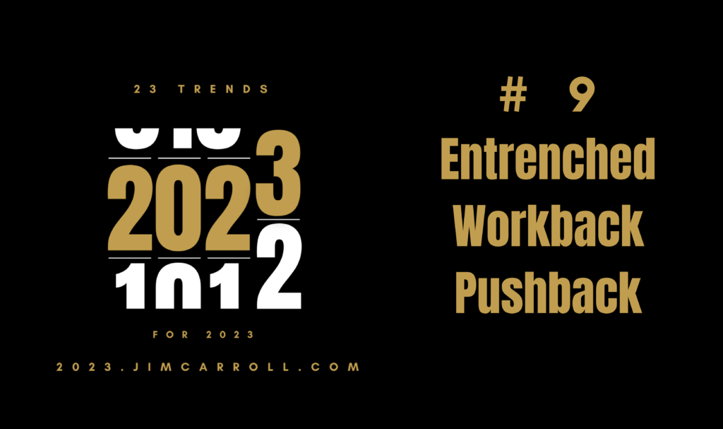 But many of them don't want to come back - freedom, once attained, is always fought hard for. That's why trend #9 of my '23 Trends for 2023' - the issues that executives and companies need to watch for - is Entrenched Workback Pushback.
