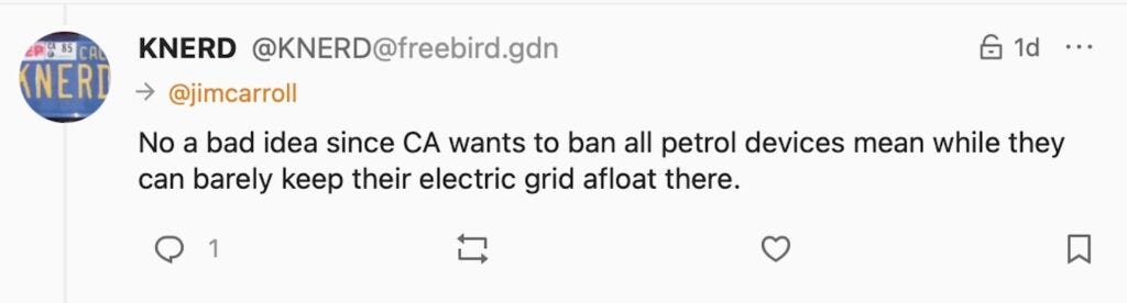 As might be expected, I got some pushback, including from this fellow who suggested that I was rather wrong in my observation. He suggested that in essence, maybe Wyoming is right, as he stated that California can barely keep its grid afloat with various energy challenges.