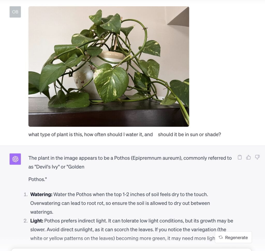 Did I mention AI is emerging at a furious pace? In just the last few weeks, anyone who is paying for GPT Pro at $20 a month will be getting what people are calling ChatGPT Vision.In essence, take a picture, and let ChatGPT tell you about it.