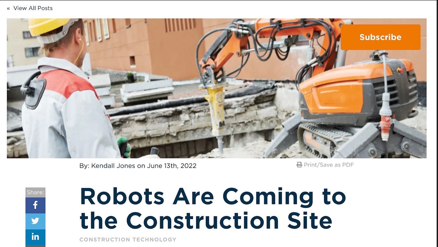 These folks put in place a lot of very sophisticated facilities, and hence anything they can do to streamline the process, reduce cost, AND deal with labor shortages is a good thing, and the idea of fundamental methodology modification fits the bill. And so my story for them yesterday involved these trends - essentially, as robots come to the construction site.