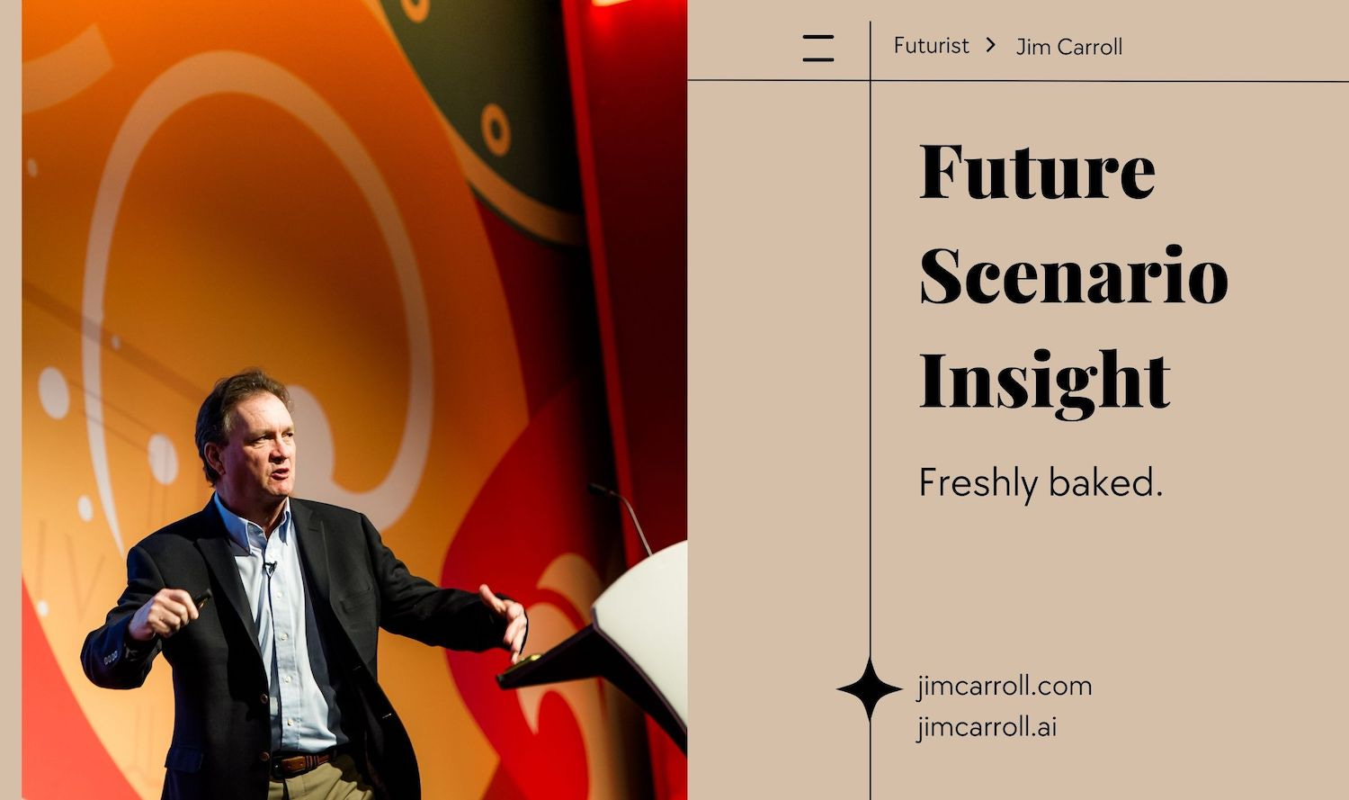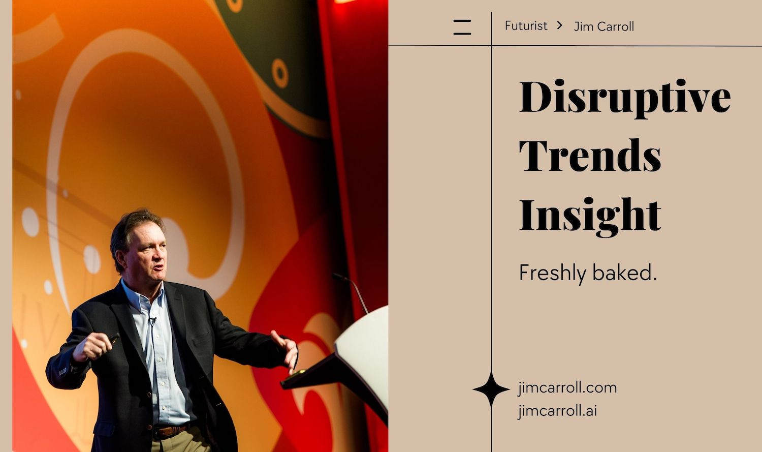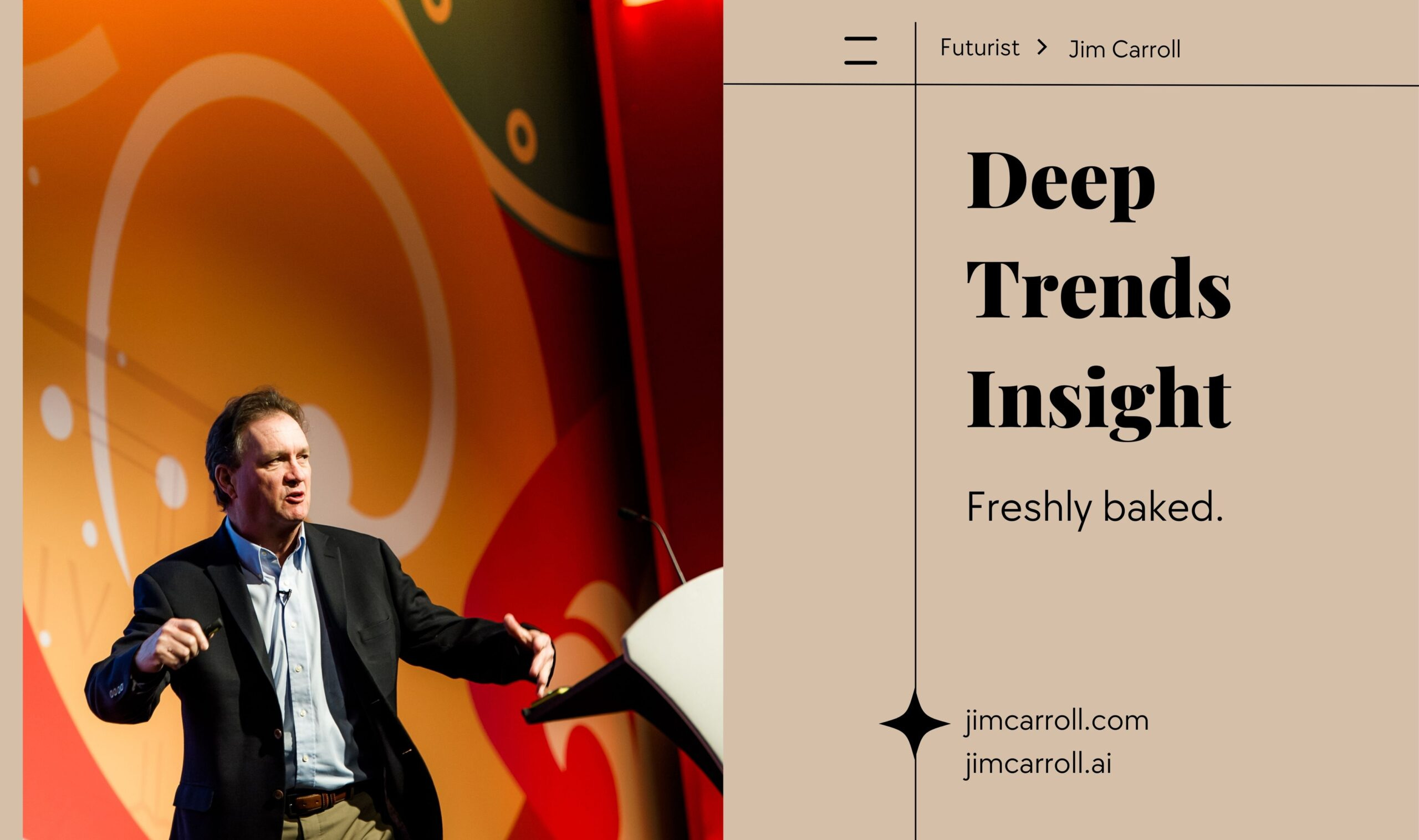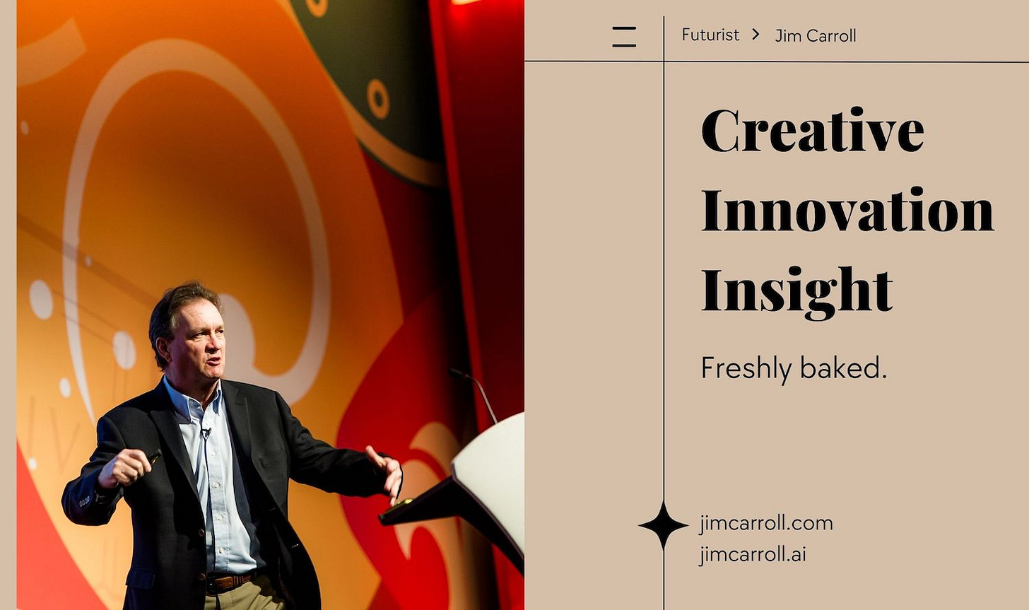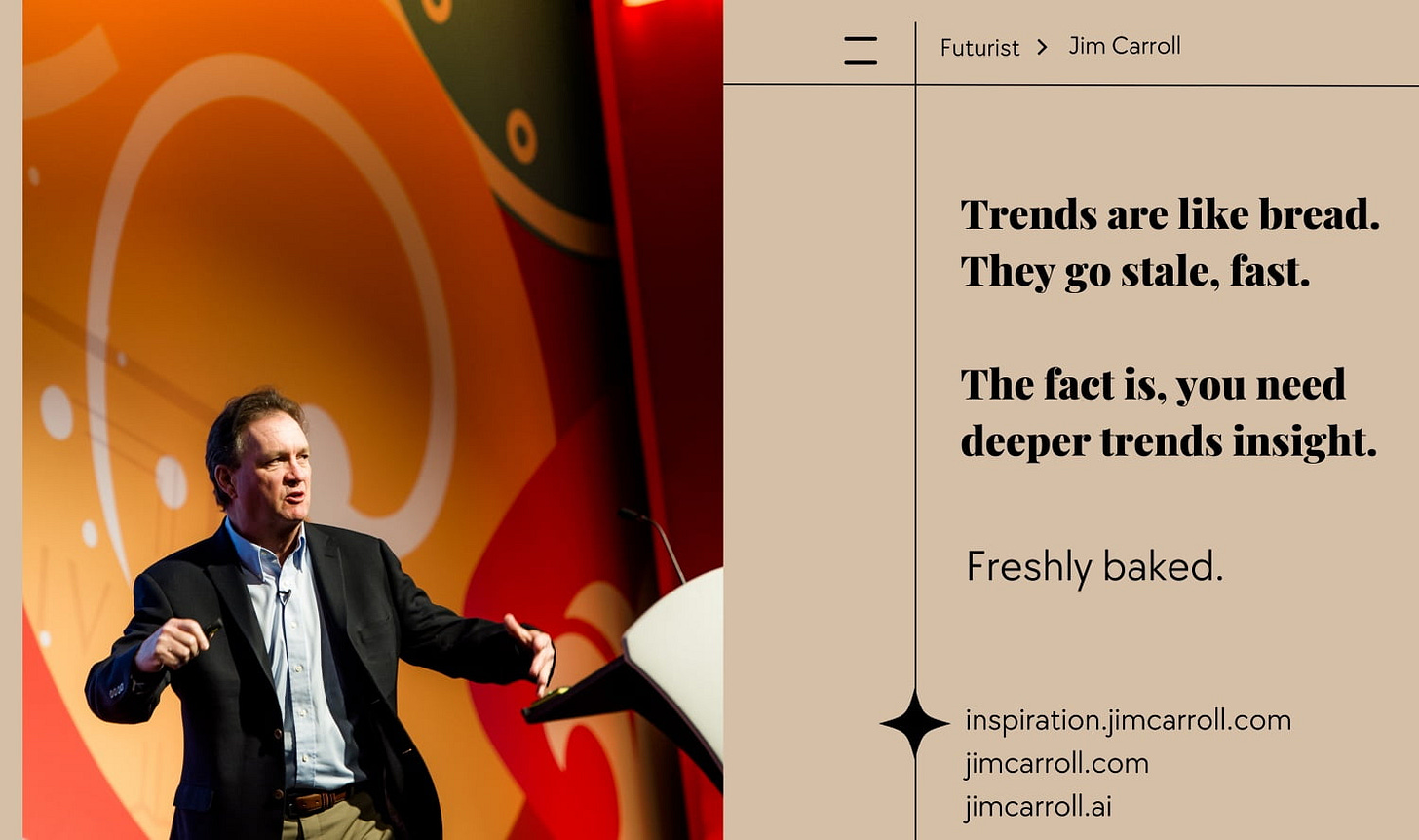 Futurist Jim Carroll loves the idea of fresh-baked bread. The image of the warm bakery, the bright lights, the morning coffee -- all there to inspire you to joy! Freshly-baked. It's a wonderful phrase that evokes so much.