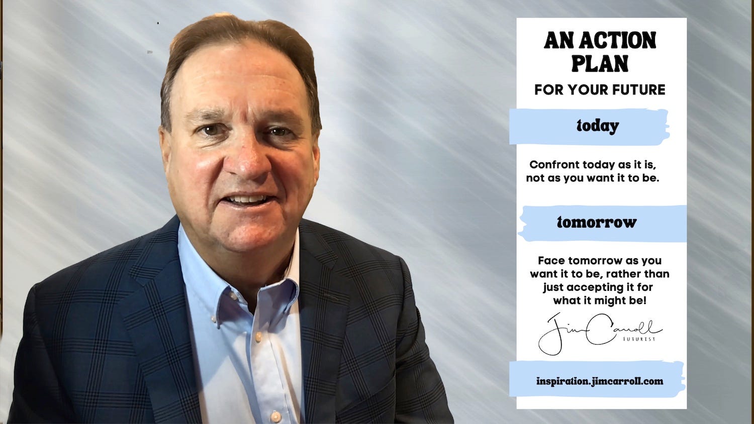 "Confront today as it is, not as you want it to be, but face tomorrow as you want it to be, rather than just accepting it for what it might be!"