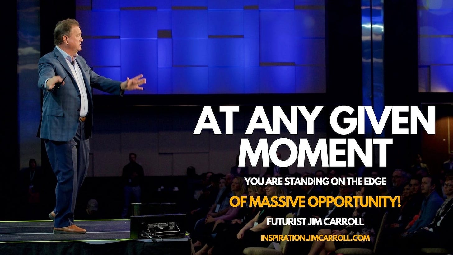 “At any given moment, you are standing on the edge of massive opportunity!” - Futurist Jim Carroll