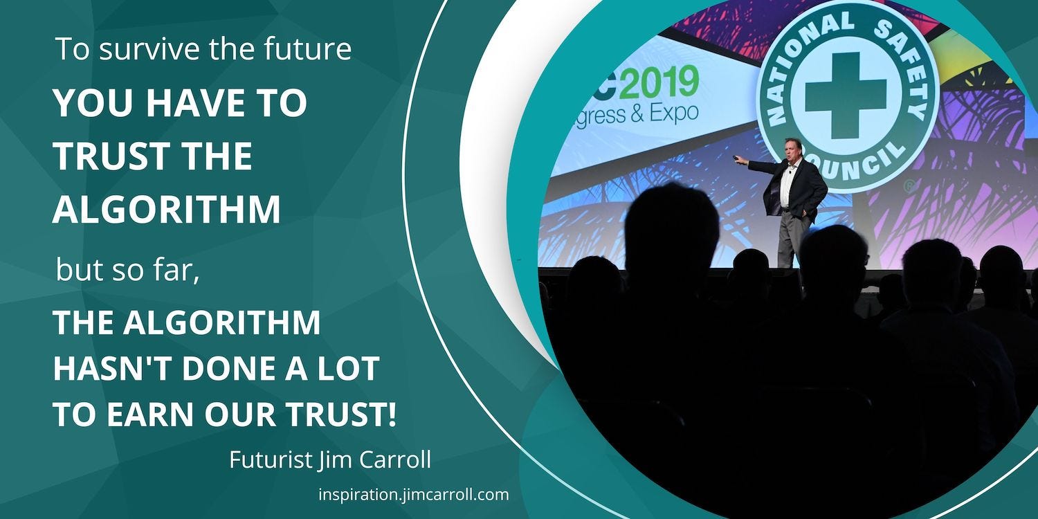 Futurist Jim Carroll worries about the algorithm and knows that most organizations chase the shiny new toy before they think about its implications. He spent a lot of time during his keynote for the National Safety Council talking about the accelerated workplace and societal risk that comes with AI.
