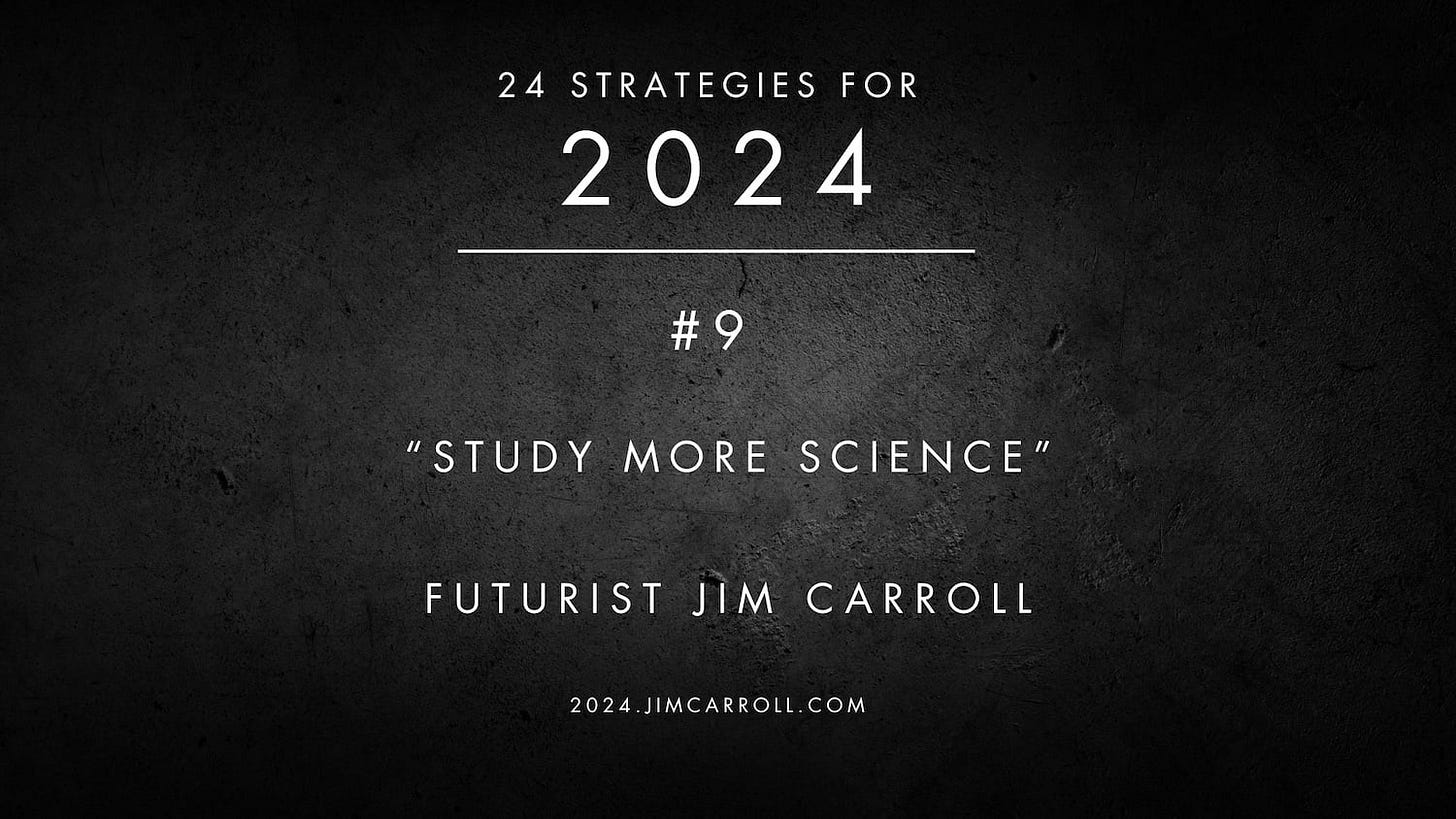 In that context, think about your world - your job, career, profession, company, or industry. What new ideas, products, services, and disruptive trends should you be aware of that are emerging at a fast pace? Study the science - take on the job of tracking more science as it unfolds.