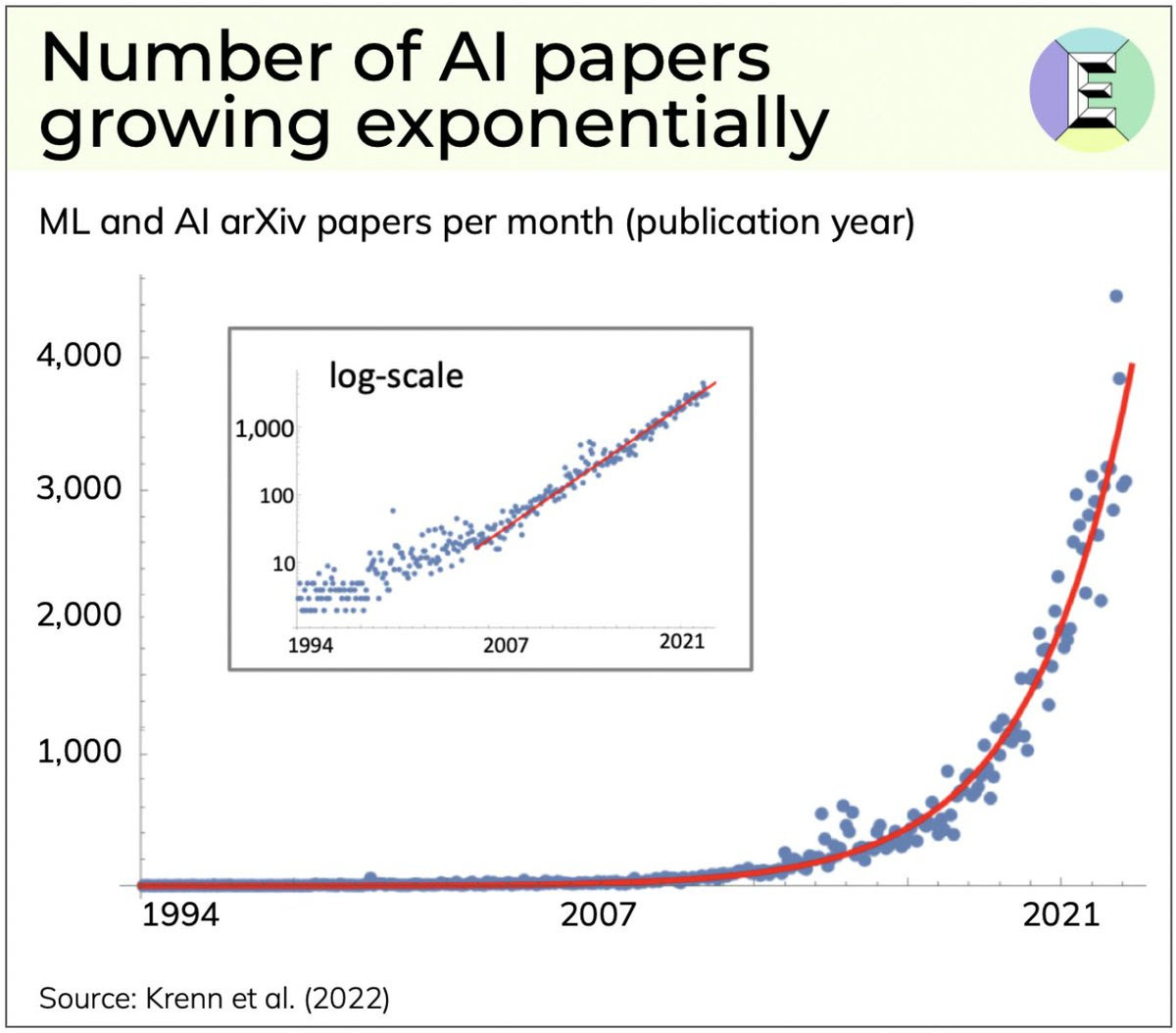 The other has to do with the number of research papers being published each year on artificial intelligence. We are, as that phrase goes, at a 'tipping point.'