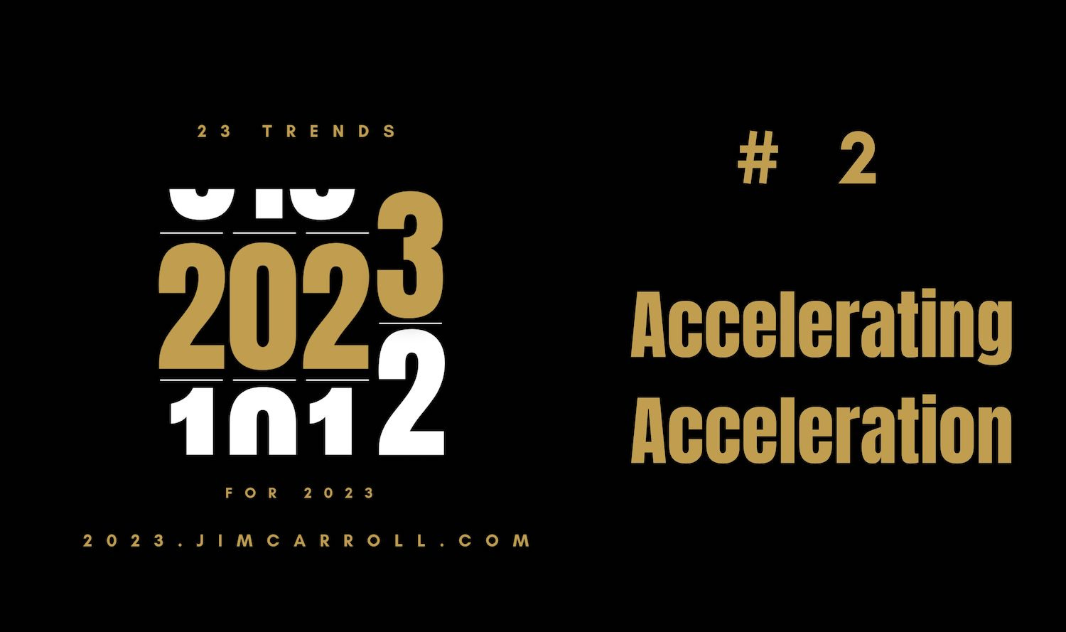 If you take these two key trends - products last for shorter periods of time, yet every product is becoming 'smart' - the linking of the two trends above - then clearly things aren't just moving fast anymore. Something bigger is happening. And that's why I think in 2023, a key trend will be that many senior executives in many industries will come to a realization that they need to accelerate their acceleration. Many have already been focused on 'being fast' - numerous keynotes that I do for corporate offsite meetings on behalf of CEOs are focused on that message and the need for agility.